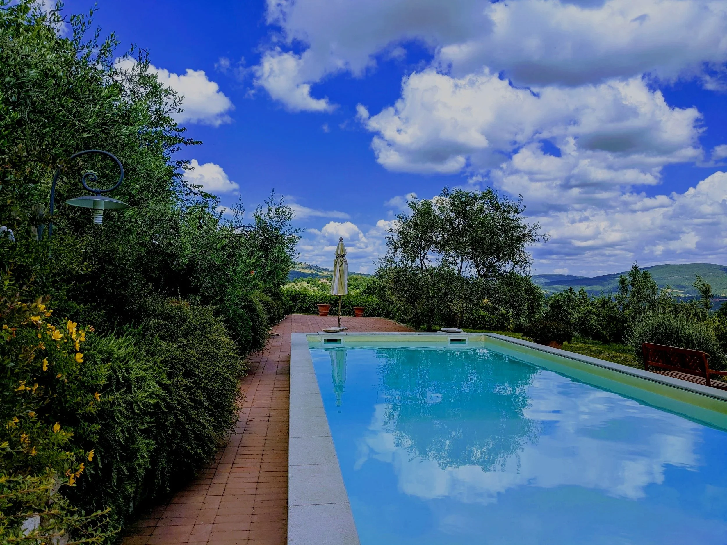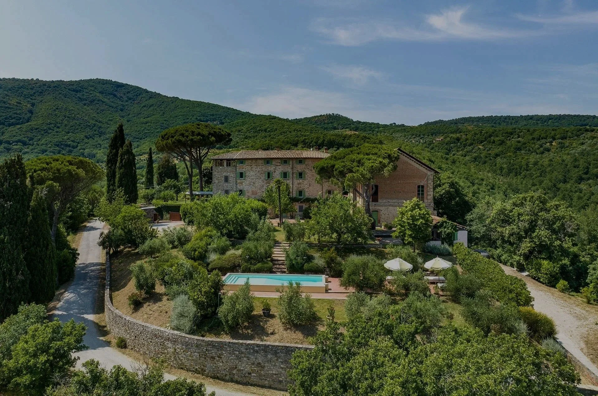Set in the hills near Cortona, Terzo di Danciano is a private estate surrounded by olive groves and open landscape.